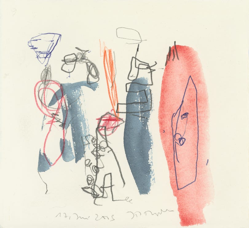 Das eigentliche Zentrum, Pulsschlag der Stadt, ist eine einzige Wand in der Galerie »Kunstgrenze«. Eine Wand mit Zeichnungen des Künstlers Jan Peter Thorbecke. Arbeiten, die Traumfigurationen nachhängen – wie vom Nachmittag veratmet der Viola; Gedankenketten über Hast und Unruhe und Verlorenheit gespannt der Menschen; Evangelien einer über den See alpenhin treibenden Barke; Blätter so leicht und schön, Blätter der zarten, geradezu zärtlichen Farbigkeit. Im Betrachter wächst die Überzeugung, daß Stimmen aus der Stille uns nur weiterhelfen; daß wir von einer Welt des Geschreis uns abwenden, bzw. über diese hinausschauen sollten.
